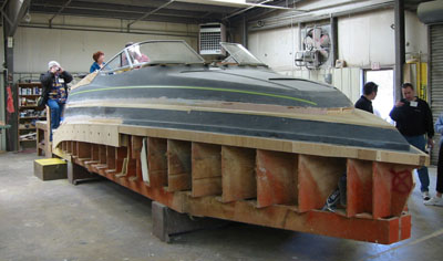 | The hull sections are 'popped' from the forms and each one is finished. | |